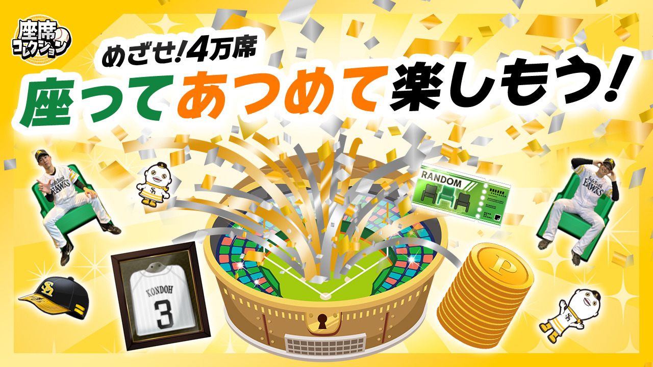 みずほPayPayドーム福岡の座席を集めながら球場MAPを埋めていくゲームです。観戦チケットの読み込みや日々のアクセス、アイテムの使用でゲームを進めることができます♪