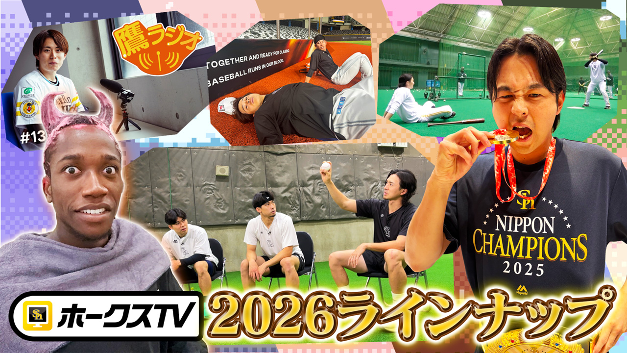 筑後で奮闘する2~4軍の若鷹たちやリハビリ組の選手たちの様子を毎週お届けします。未来のスター選手候補たちのフレッシュな姿が見られる貴重映像が盛りだくさんです。