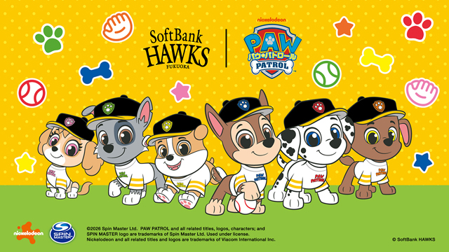 当日は、入場者全員にファイト!九州2026ユニフォームを配布します。試合前には福岡女子高等学校吹奏楽部によるマーチング演技を実施し、球場を盛り上げます☆また、当日は大人気アニメ「パウ・パトロール™」とのコラボイベントも実施!