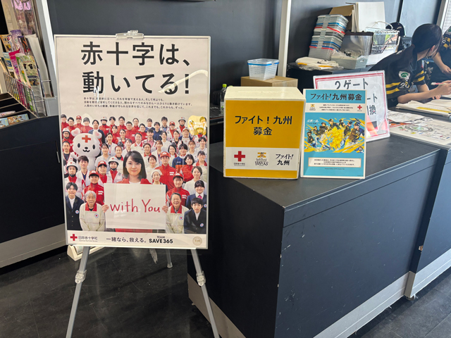 ファイト!九州デー当日に、会場で募金箱・PayPay募金を設置します。集められた募金は日本赤十字社 福岡県支部を通じて九州各県の災害や病気から人を救う活動(いのちを守る活動)に役立てられます。