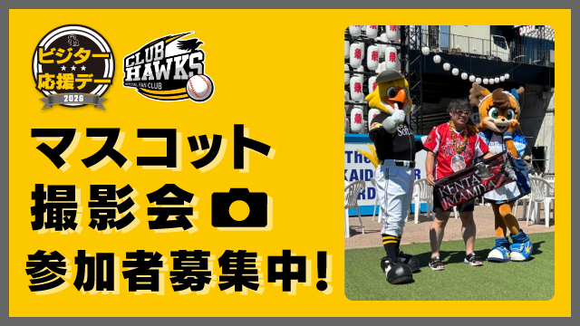 それぞれ開催日の2日間はクラブホークス会員を対象に、マスコット撮影会やグラウンド練習見学の参加者を抽選で事前募集します!他にも、来場すると参加できる、ためタカ!アプリの「ためタカ!ガチャ」の開催や、タカポイント交換所の出張営業も行います。