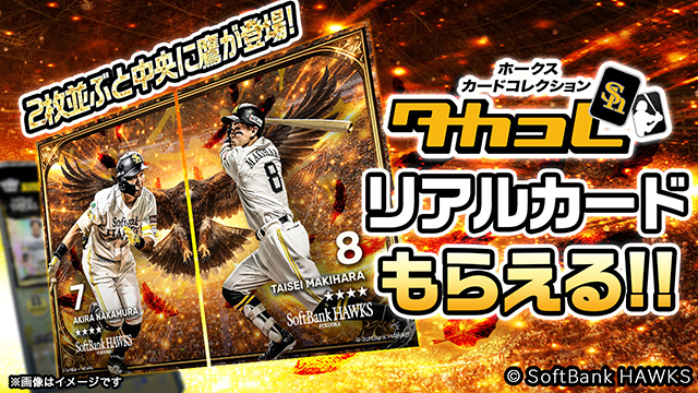 さらに、昨シーズンに引き続き、通常のグッズに加え、『ホークスカードコレクション・タカコレ』のリアルカードもあわせてプレゼント!