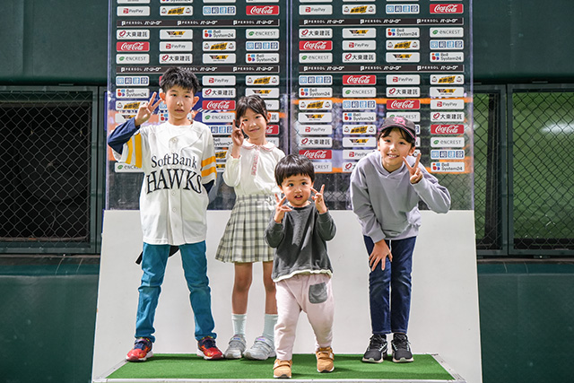デーゲーム限定で、ホークスの試合終了直後のグラウンドを体感!内野エリアでは、ベースランニングやお立ち台での記念撮影が楽しめ、外野エリアでは開放的な空間でキャッチボールを満喫できます。試合の熱気が残るグラウンドで、普段は味わえない特別な瞬間をお楽しみください。
