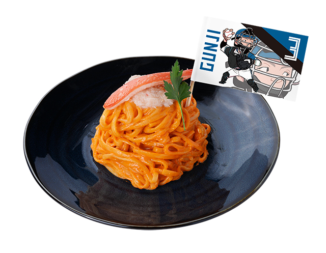 最近ワインを楽しんでいることもあり、「おしゃれ路線」でプロデュースしたいと意気込んだ郡司選手は、パスタで開発することに!なかでもクリーム系のパスタが好みなので、ソースに合う食材として北海道を代表するカニを採用した、贅沢な一皿に仕上げました。