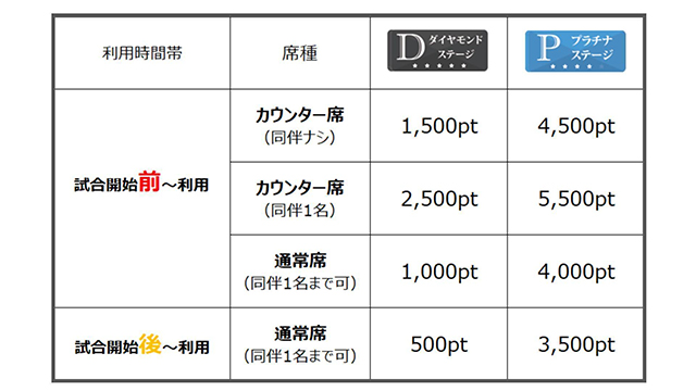 ご希望の利用時間帯・席種により、必要ポイント数が異なります。