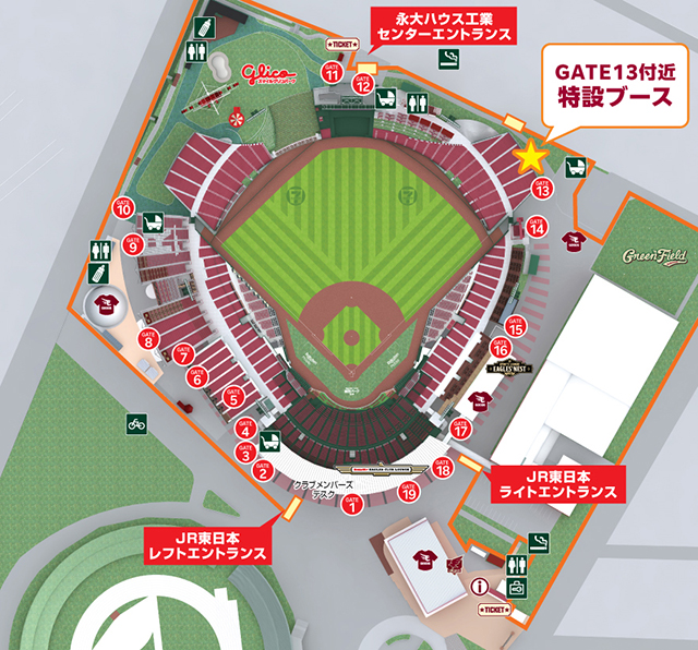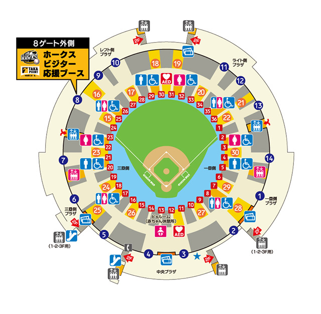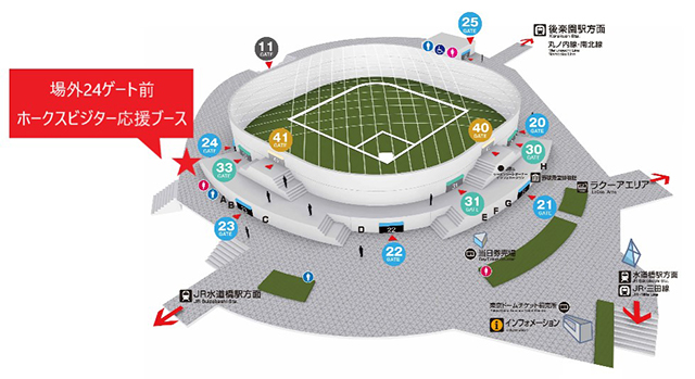 ※場内コンコースからはアクセスできませんのでご注意ください。入場後にビジター応援デーブースにお越しになる場合は、再入場手続きが必要です。
