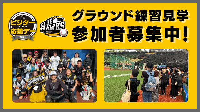 試合開始前の時間にグラウンドで選手の練習を見学できるイベントをクラブホークス会員限定で事前募集(抽選)します。