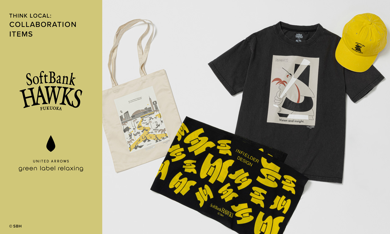 人気セレクトショップで福岡県内にも店舗を展開する「ユナイテッドアローズ グリーンレーベル リラクシング(以下、グリーンレーベル)」とのコラボグッズの発売が決定!4月24日(金)より、HAWKS STORE、ホークス公式オンラインストアに加え、「ユナイテッドアローズ グリーンレーベル リラクシング」アミュプラザ博多店、ららぽーと福岡店、「ユナイテッドアローズ オンライン」等「グリーンレーベル」取り扱いの各ECサイトにて販売いたします。