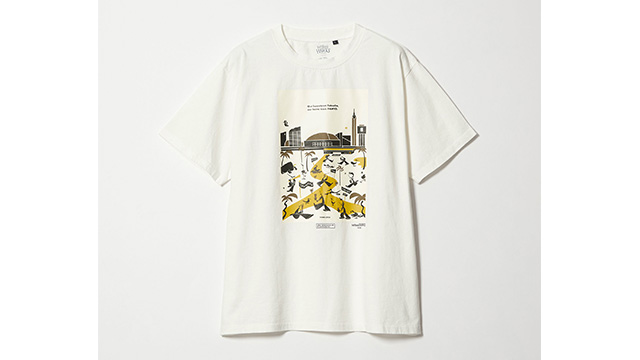時間の積み重ねを感じさせるフェード加工を施し、ホークスの歴史や前進し続ける姿勢を表現。モチーフには、ホークスのエンブレムやスイングの軌道をイメージした伸びやかなラインを採用し、動きと迫力を感じるデザインに落とし込んでいます。みずほPayPayドーム福岡周辺の風景を連想させるアートを取り入れ、街のにぎわいや空気感をグラフィカルに表現した一着です。球場の象徴的な建築や周辺のランドマーク、行き交うファンの活気など、ローカルの魅力が伝わる仕上がりです。