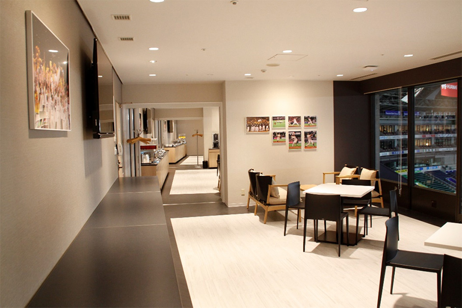 みずほPayPayドームの貴賓室「スーパーボックス」6階にある「Party Suite」は、ビュッフェ形式のお食事を楽しみながら野球観戦ができるプライベートスペースです。最少15名様から最大100名様までご利用可能で、パーティーや懇親会など幅広くご利用いただけます。