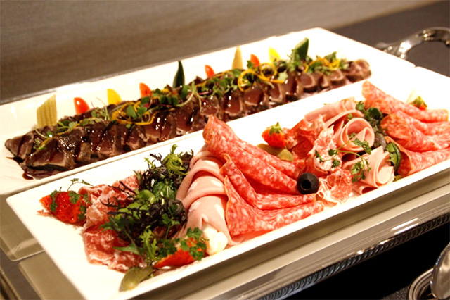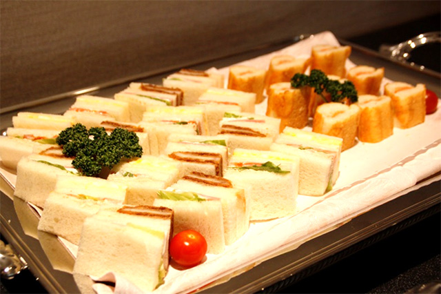 オードブル、サラダ、サンドイッチ、カレー、揚げ物、魚料理、肉料理、デザート等をご用意しております!
