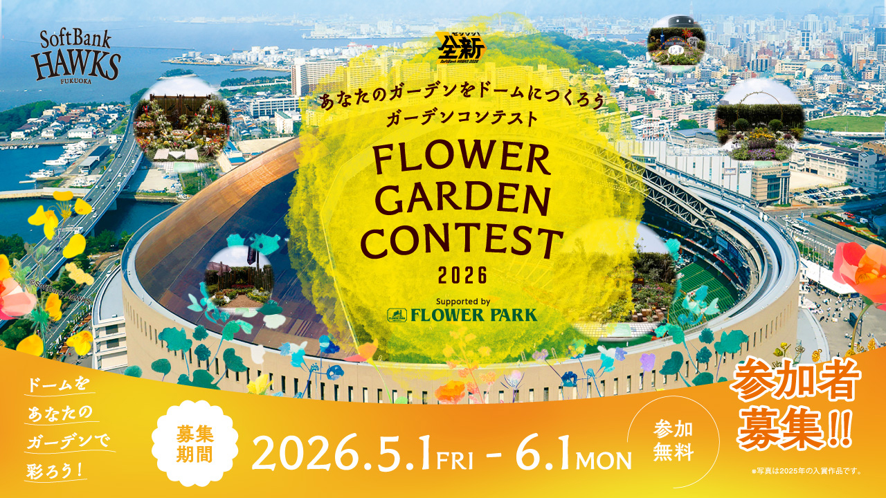 みずほPayPayドーム敷地内の花壇を花や緑で飾る「ホークスみんなのガーデン フラワーガーデンコンテスト2026 Supported by フラワーパーク」を開催します。応募の受付を5月1日(金)から開始!