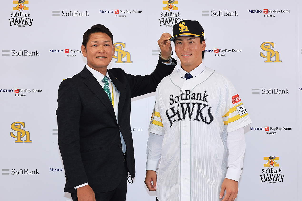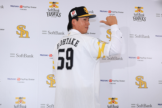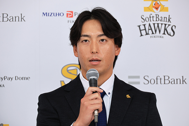 2026年4月18日(土)、育成選手から支配下選手となった大竹風雅投手が会見に臨みました。背番号は「59」。大竹投手は福島県出身の26歳右腕。東北福祉大を経て2022年にドラフト5位で入団。同年4月に右ひじの手術を受け、そのオフに育成選手となりました。その後は懸命なリハビリを続け、今年の春季キャンプでは自己最速を更新する155キロを計測するなどアピールを続けていました。ケガを乗り越え4年ぶりとなる支配下選手として再出発を切ります。