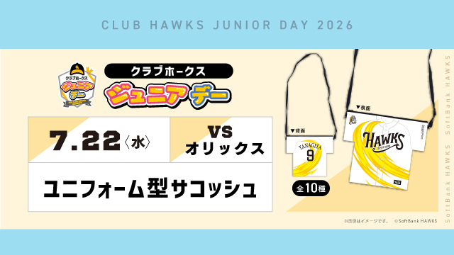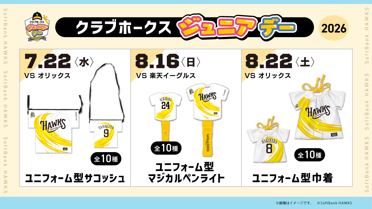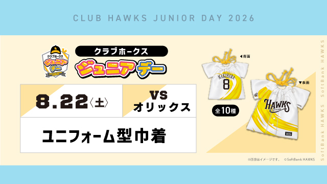 - ※「クラブホークス ジュニアデー」は、高校生以上のクラブホークス会員様への限定グッズの配布はございません。
