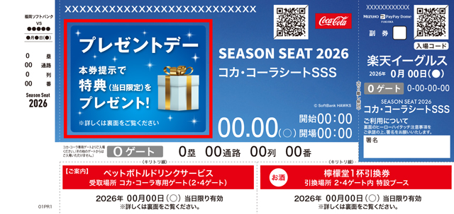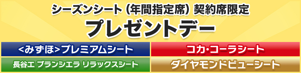 <みずほ>プレミアムシート/コカ・コーラシート/長谷工 ブランシエラ リラックスシート/ダイヤモンドビューシートのシーズンシート(年間指定席)でご観戦のお客様限定!