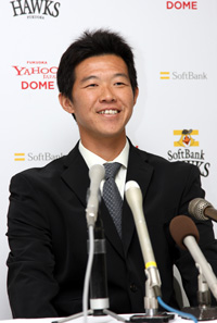 ![]() | 今季までホークスでプレーした星野順治投手が現役引退を表明しコンディショニングコーチ補佐に就任しました。11月7日(金)、ヤフードームで会見を行った星野コンディショニングコーチ補佐は「11年間ホークスでプレーさせてもらって感謝の気持ちでいっぱいです。これからはコンディショニングコーチ補佐としてホークスの力に少しでもなれるようにがんばります」と引退の報告と今後の抱負を語りました。 |
