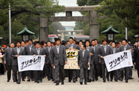 ![]() | 1月30日(金)、宮崎でのキャンプインを目前に控え、福岡市東区の筥崎宮にて必勝祈願を行いました。秋山幸二監督を先頭にコーチ、選手、スタッフが、球団理念である「めざせ世界一!」の巨大絵馬と今季のスローガン「フリキレ!!」のフラッグとともに参拝しました。 |