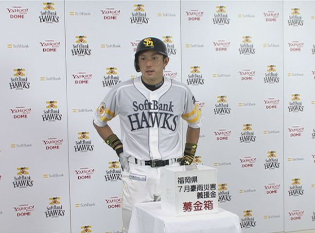 8月、ヤフードームで開催される公式戦(9試合)にて「福岡県7月豪雨災害」の募金活動を行うことになり、ホークス選手会を代表して選手会副会長の川崎宗則選手が、ご来場者の皆さまへのご協力を呼びかけました。