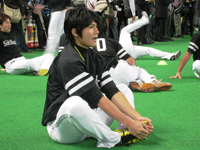 好調の打撃陣も小久保裕紀選手や多村仁志選手など試合前練習では入念にバットを振り込んで感触を確かめていました。選手たちの表情は明るく、連勝中の勢いが感じられます。