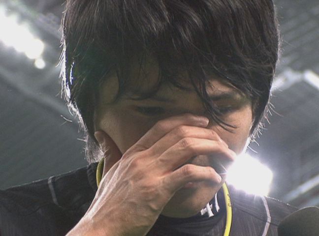 試合後のヒーローインタビュー。「相手がダルだったし、僕ががんばればこういう展開になると思った」と試合を振り返り、そして「ここ4試合…」と言いかけたときでした。