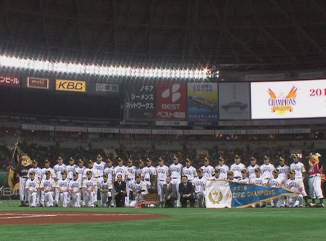 | 感激のペナント授与。優勝セレモニーの様子 |
