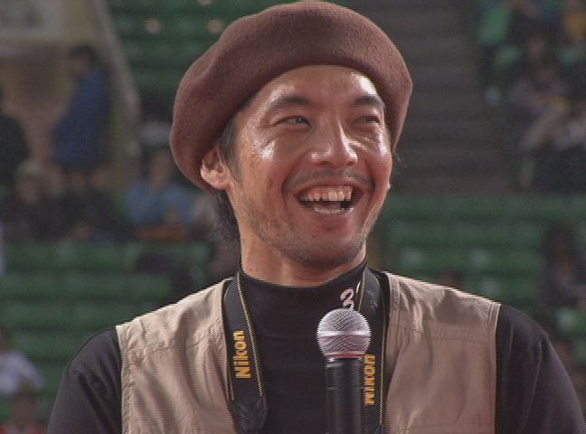 そして、内野エリアにはステージを設置し、「ごきげんよう風/サイコロトーク」「ハニーズ&選手ダンスステージ」「徹子の部屋風/プライベート暴露インタビュー」「尻相撲トーナメント」「サンデーモーニング風/自画自賛・御意見番 あっぱれ&喝」の5つの豪華プログラムに次々と選手が登場しました。司会進行はタレントのお2人にお願いしていましたが、何と特別ゲストが!よく見たら、あの司会者やあの戦場カメラマンにコスプレした森本学選手でした!