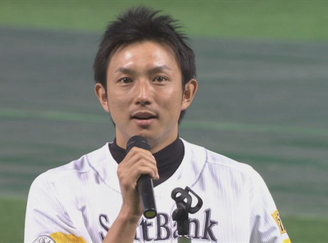 そして、ファイナルセレモニーでは、今季でホークスを退団する村松有人選手(ホークススカウトに転身)、水田章雄投手(ホークス打撃投手に転身)、佐藤誠投手(ジャイアンツ打撃投手に転身)、荒川雄太選手(ライオンズに移籍)の4名があいさつをしました。