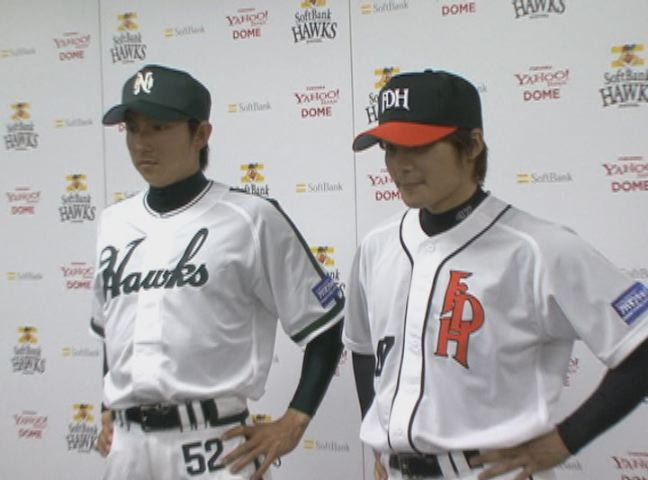 | メモリアルイヤーを迎えたホークスが、歴史の扉を開きます。福岡移転20周年および球団創設70 周年事業として、「福岡ダイエーホークス復刻モデル」と「南海ホークス復刻モデル」のユニフォームを製作しました。 ダイエーホークス復刻モデルは5月24日(土)のタイガース戦(ヤフードーム=当日は「九州上陸20周年記念デー」)で、 南海ホークス復刻モデルは6月6日(金)のタイガース戦(甲子園)で選手たちが実際に着用して試合に臨みます。 3月18日(火)にお披露目会見を行い、川崎宗則選手が南海ホークス復刻モデルを、杉内俊哉投手がダイエーホークス復刻 モデルを着用して会見に臨みました。 川崎選手は「ホークスは歴史のあるチーム。その厚みを感じました」と感慨深げ。このユニフォームは1959年から1968年 まで使用されていたタイプの復刻モデルで、左腰の「腰番号」が特徴です。1964年にはタイガースを破り5年ぶり2回目の 日本一に輝きました。「僕は1981年生まれなのでその頃は知りませんが、その時のプレーヤーの気持ちになって、無敵の ホークスとして戦いたいと思います」と力を込めていました。 杉内投手は入団から3年間着用したユニフォームに「違和感はないですね。チームのみんなからもそう言われました」と笑 顔。「愛着がありました。あの頃がよみがえります」と話しました。杉内投手の言う“あの頃”とは2003年の日本シリー ズです。MVPを獲得する活躍で、チームは4年ぶりの日本一に輝きました。5月24日(土)のヤフードームに、あの当時の球 史に刻まれた“史闘”がよみがえります。 また、選手着用のものと全く同じ仕様のユニフォーム「プロコレクション」を発売致します。3月28日(金)までホークス 公式サイト内の「オンラインショップダグアウト」にてご注文を受け付けます。 |