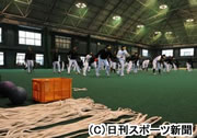 17日、キャンプ初の雨天練習を行った。A組(1軍)が午前9時30分から室内練習場で打撃練習などを行い、その後、B組が練習を開始。A組は正午すぎに全体練習を終えた。39歳の小久保裕紀選手は「みんなヘトヘトになってる時期やしグッドタイミングな雨やね。それを見越して昨日前倒しで紅白戦もやってるわけやし。積極的休養にあてますわ」と話した。