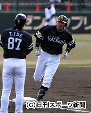 恩返しの1発で吹っ切れた。内川聖一選手が、10日横浜戦(北九州)で3番左翼で先発。古巣相手にオープン戦初本塁打を含む3安打と大当たりだった。前日まで打率2割だったが、3試合連続安打と調子は上向き。このままパ・リーグ開幕まで、安打製造機の勢いは止まらない。