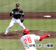 秋田市生まれの攝津投手は社会人時代、JR東日本東北に所属。仙台市で過ごしただけに、震災に心を痛めながらのマウンドだった。「そういう(東北に勇気を与える)気持ちで投げていきたい。強い気持ちを持って」。