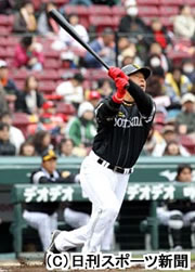 開幕左翼、確定弾だ!松中信彦選手が、オープン戦第2号を放った。広島戦(マツダスタジアム)に、3番左翼で出場。初回の第1打席で、右翼席へ技ありの2ランを放った。大型補強で定位置が保証されていなかったが、オープン戦打率3割7分9厘。左翼の定位置をがっちりつかんだ主砲が、2011年の準備を整えた。