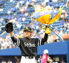 杉内投手は鹿児島実業高校から三菱重工長崎を経て2001年ドラフト3巡目で入団。プロ初奪三振は2002年4月1日のマリーンズ1回戦(福岡ドーム=当時)でサブロー選手から記録しました。