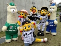 トラッキーとのマスコット交流。トラッキー・ラッキー・キー太と一緒にファンのお出迎えや試合前のステージイベントに参加しました。日曜日の甲子園、もちろんタイガースファンも多かったのですが、ホークスファンも負けないくらいたくさんのファンが来場、試合前から球場のボルテージは最高です。