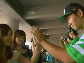 7月15日(日)のマリーンズ戦に始まり、7月16日(月・祝)のバファローズ3連戦にかけて行われた「鷹の祭典2012inヤフードーム」。4試合すべてで38,561人(ヤフードーム定員)の満員御礼が記録されました。福岡の街の至る所でも、鷹の祭典専用ユニフォームを着用していただき、まさにヤフードームと福岡の街全体が「VVグリーン一色」に染まった4日間となりました。