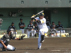 この日は「9番三塁手」でスタメン出場。打席は1打席のみで、「今日はボールを見るだけ」と一度もバットを振ることなくフルカウントからフォアボールを選びました。一塁へ行くと、次打者の初球ですかさず盗塁を敢行。形はランエンドヒットなり、二ゴロとなった打球でゲッツーを阻止しました。また、守備機会も一度のみでしたが、無難にサードゴロをさばきました。
