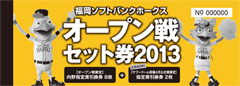 ※ヤフードーム7番チケット売場の場合は2月25日(月)以降、直接「オープン戦セット券2013」(10枚綴り)を購入できます