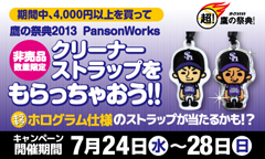 期間中、オフィシャルグッズショップダグアウトにて、合計4,000円以上お買上げの方へ非売品のPansonWorks鷹の祭典クリーナーストラップをプレゼント!