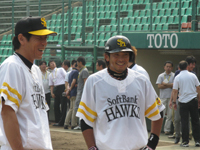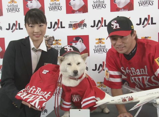 馬原投手、「ホークスジェット」モデルプレーンを贈られ笑顔。「白戸家のお父さん」も駆けつけた!