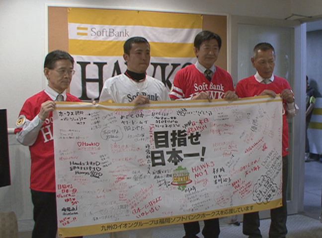 大隣投手が、メッセージ入り「勝たんといかんバンダナ」を受け取りました
