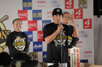 秋山監督、小久保選手、川崎選手、和田投手が共同会見に出席。川崎選手「目の前の試合を全力で戦ってきた」
