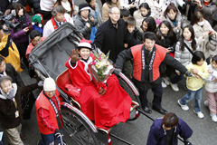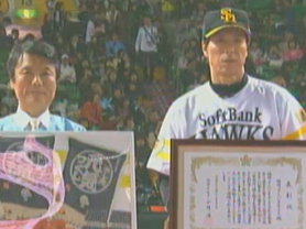 森福投手が「MIP」を受賞し、西新商店街をパレード。