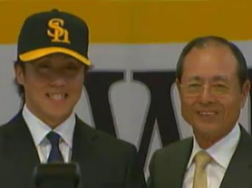 帆足投手が入団会見。「とにかく1年間ローテを守り抜く」