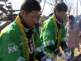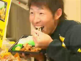 本多選手、応援弁当を贈呈され「美味しい!」と大満足
