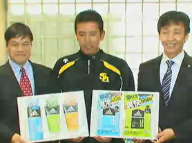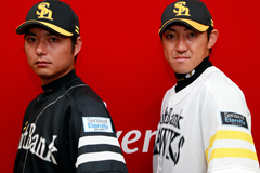 内川選手と攝津投手がモデルとなりお披露目。ユニフォーム左袖マークのデザインが変わりました。