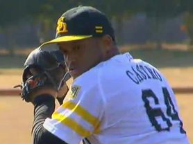 カストロ投手が初実戦で2回完全152キロ! 長谷川選手と明石選手は「3の2」1盗塁!