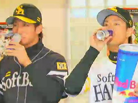 城所選手と福田選手に「レッドブル」を贈呈「チャージします!」