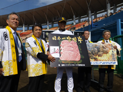 秋山監督が宮崎特産品贈呈式に出席。日本一の和牛を前に「来年は日本一」と誓う