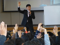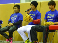 森福投手、城所選手、福田選手が「スポーツ教室」に参加し怪我の予防などを訴える