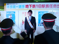 本多選手が「地下鉄1日駅長」に任命。「身が引き締まる」と背筋伸ばす